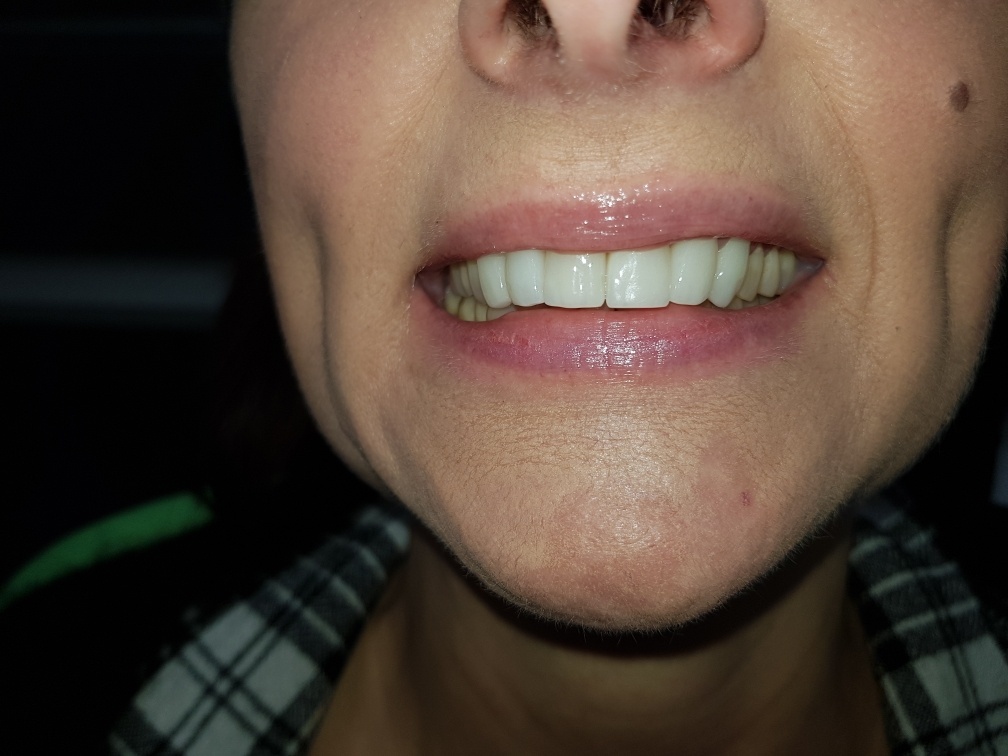 Angela heeft ongeveer 15 jaar geleden kroontjes laten plaatsen. In de loop van de tijd zijn deze oude kroontjes zich verkeerd gaan zetten, waardoor de tanden niet meer mooi in de rij stonden. Ook waren de kronen iets te geel van kleur.